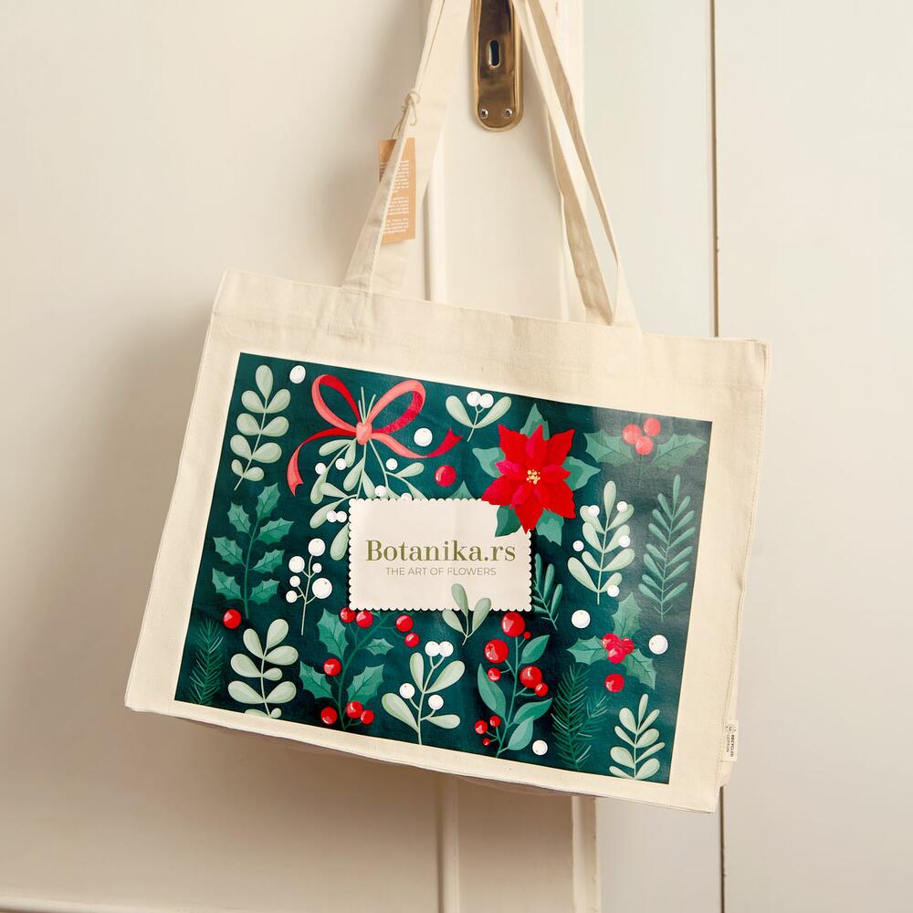 -🛍 Introducing Botanika.rs newest limited edition Christmas tote bag! ❄️ Made from recycled cotton, this tote is not only eco-friendly but also of premium quality - thick and durable. 🌼 It will bring a touch of Christmas magic to your style. With vibrant berries, festive elements, and a cozy design, its perfect for carrying your essentials with seasonal charm. Don’t miss out—grab yours while stocks last! 🎄