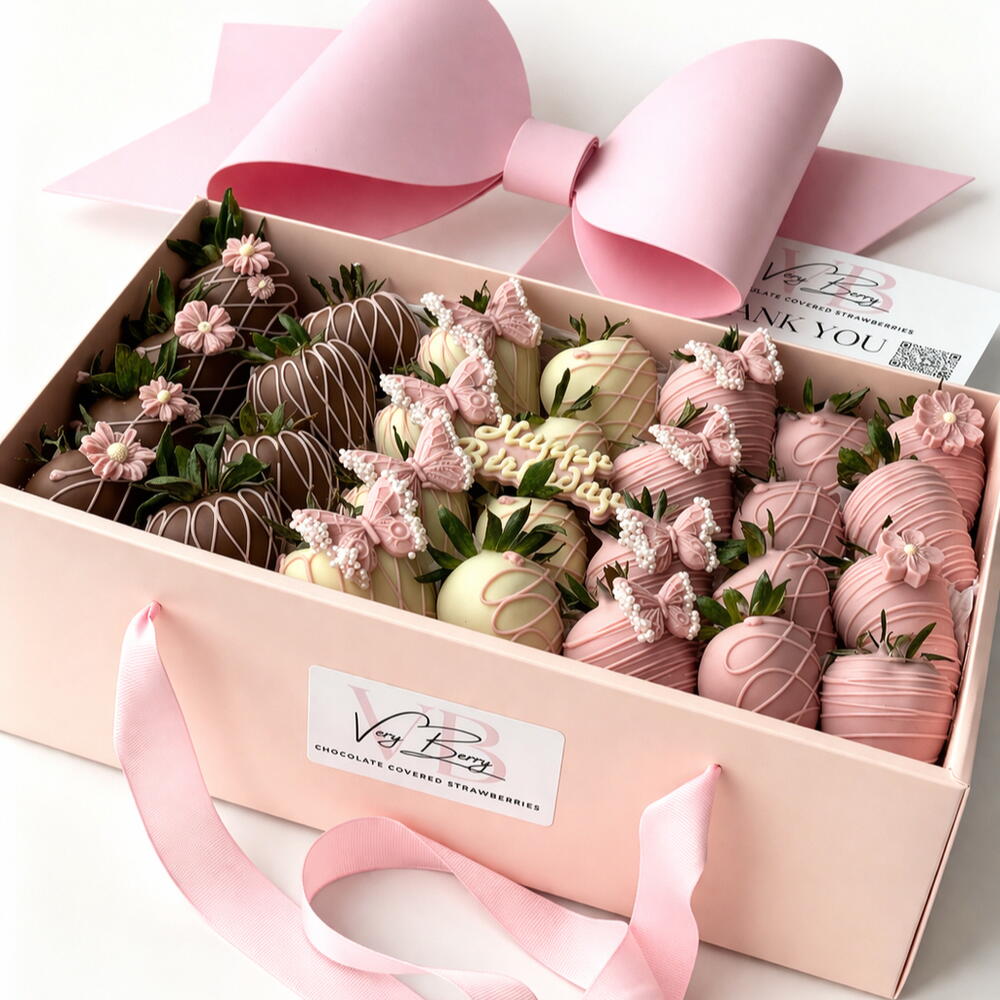 This luxury box includes 28 chocolate-covered strawberries, hand-dipped in premium Belgian chocolate and decorated with delicate butterflies, flowers, and fine details that make every piece unique. A perfect balance of beauty and flavour, designed for special moments, thoughtful gifts, or simply to treat yourself ✨ Made with love, packed with care, and guaranteed to make someone smile