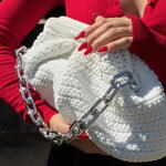 Сумка «White Cloud»: Воздушный стиль и комфорт ✨ Мягкий, слегка расслабленный силуэт в сочетании с лаконичной вязкой создает аксессуар, который выглядит дорого и актуально. Главный акцент этой модели — массивная серебристая цепь с крупными звеньями, которая придает сумке характер и современный шик. Это идеальный выбор для тех, кто следит за трендами, но ценит универсальность.