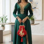 Почему она станет жемчужиной вашей коллекции: • Эксклюзивный декор: Ручная вышивка бисером создает неповторимую игру света, делая птицу почти «живой». • Утонченный силуэт: Форма «капли» в сочетании с жестким фермуаром придает сумке винтажный шарм и элегантность. • Аристократичная ручка: Кольцо в цвете «сияющее золото» позволяет удобно носить аксессуар в руке или на запястье, как драгоценный браслет. • Игривый акцент: Шелковая кисточка в тон изделия добавляет динамики и завершает восточный колорит модели.