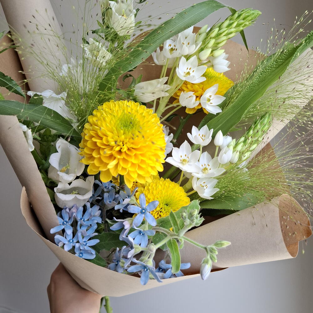 Ornithogalum - 2 ədəd Xrizantema - 3 ədəd panicum - 3 ədəd companula - 2 ədəd oxipetalum - 2 ədəd