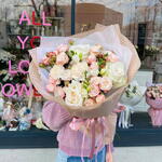 Bombastik qızılgül və freziya ilə pastel buket