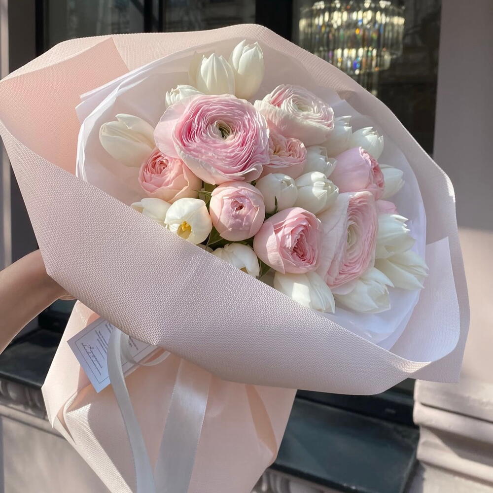 Lalələr - 17 ədəd ranunkulus - 3 ədəd bağ gülləri - 5 ədəd