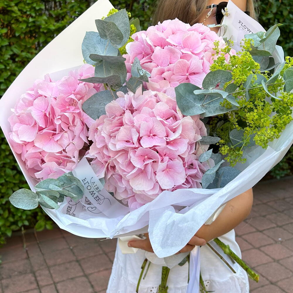 Eucalyptus - 3 ədəd Yaşıllıq - 5 ədəd çəhrayı hortensiya - 3 ədəd