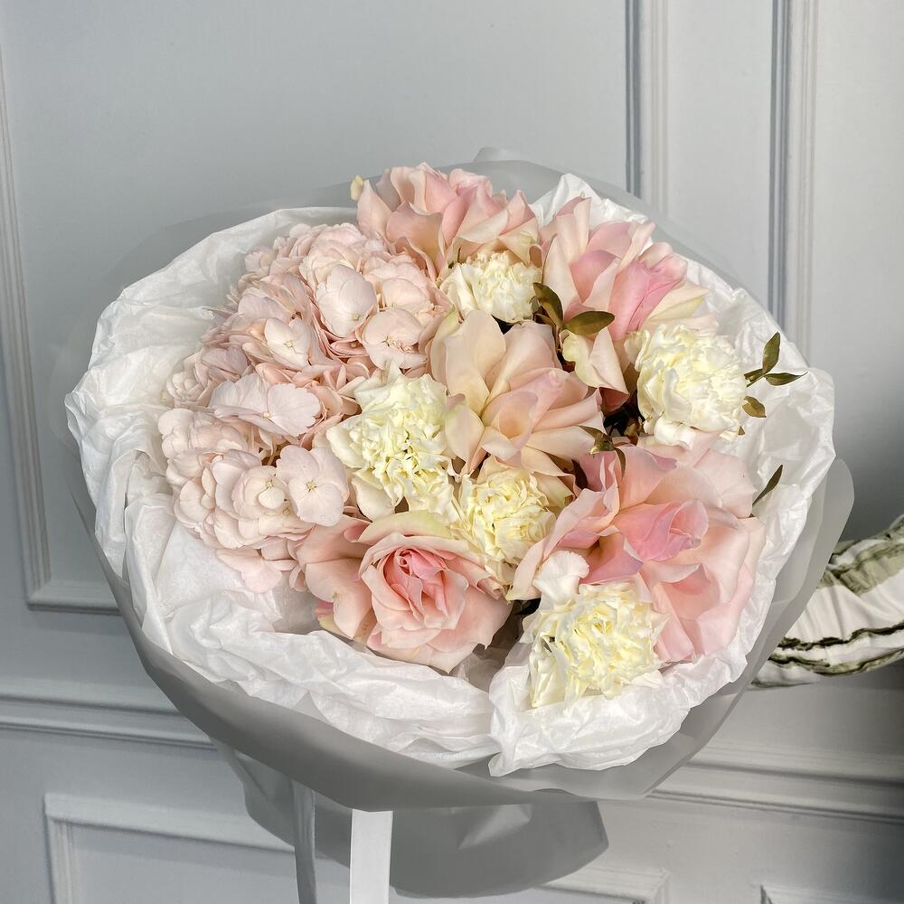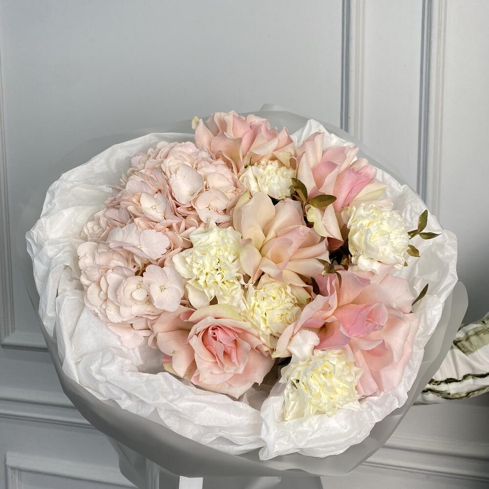 🔥a beautiful bouquet of hydrangea, dianthus and roses in the most delicate color will not leave her indifferent! ❤️made with love! 🔥прекрасный букет из гортензии,диантусов и роз в самом нежном цвете не оставит ее равнодушной! ❤️сделано с любовью !