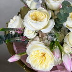 Eucalyptus - 3 ədəd Lalələr - 7 ədəd david austin gül - 7 ədəd veronica çiçəyi - 7 ədəd hortensiya - 2 ədəd spray bağ gülləri - 3 ədəd