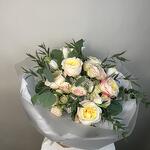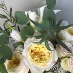 Spray rose - 5 ədəd ağ lalələr - 5 ədəd yaşıllıq qarışığı - 1 ədəd premium bağ gülü - 5 ədəd hortensiya - 2 ədəd kalla zanbaqları - 5 ədəd