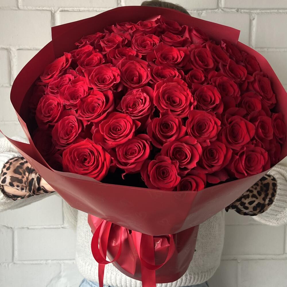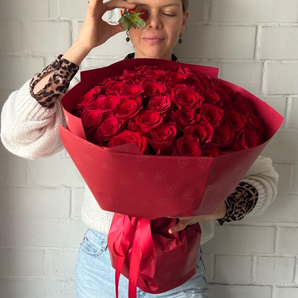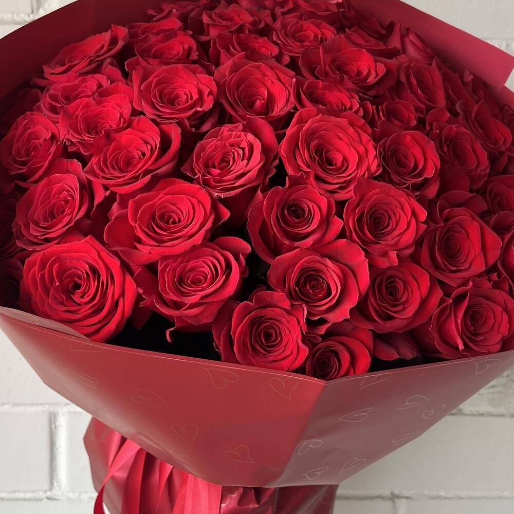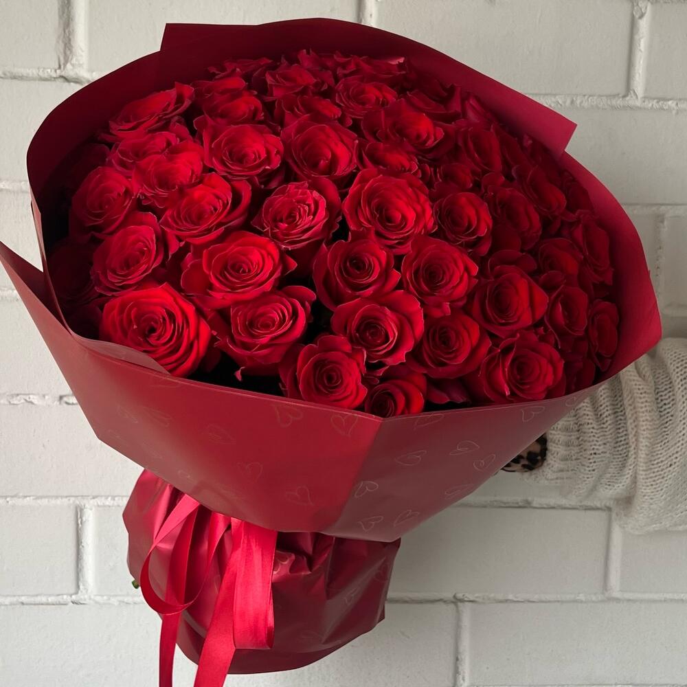 kraft packing - 1 ədəd təbrik kartı - 1 ədəd red roses - 50 ədəd