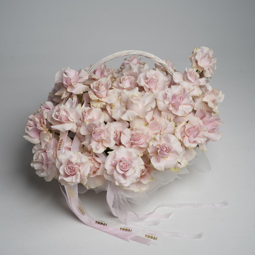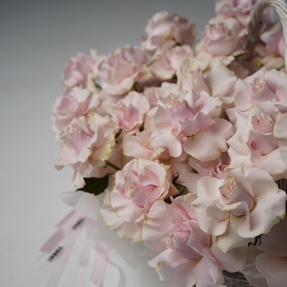 Pink mondial roses in basket