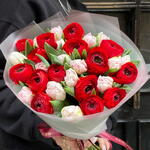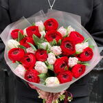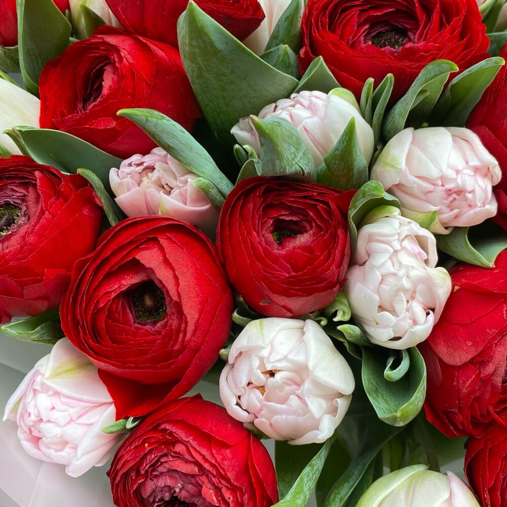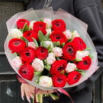 Ranunculus red 15 + tulips pink 16