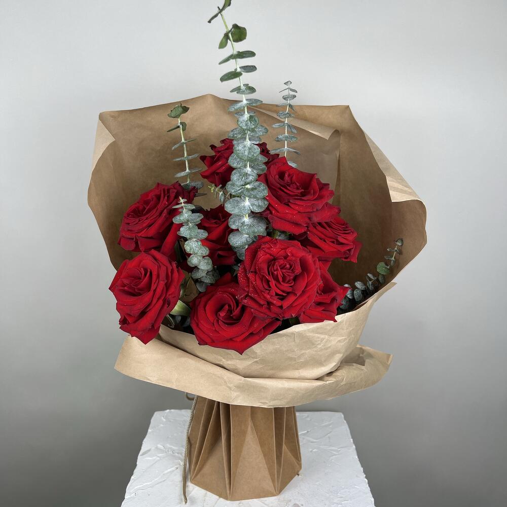Eucalyptus - 3 ədəd red roses - 12 ədəd