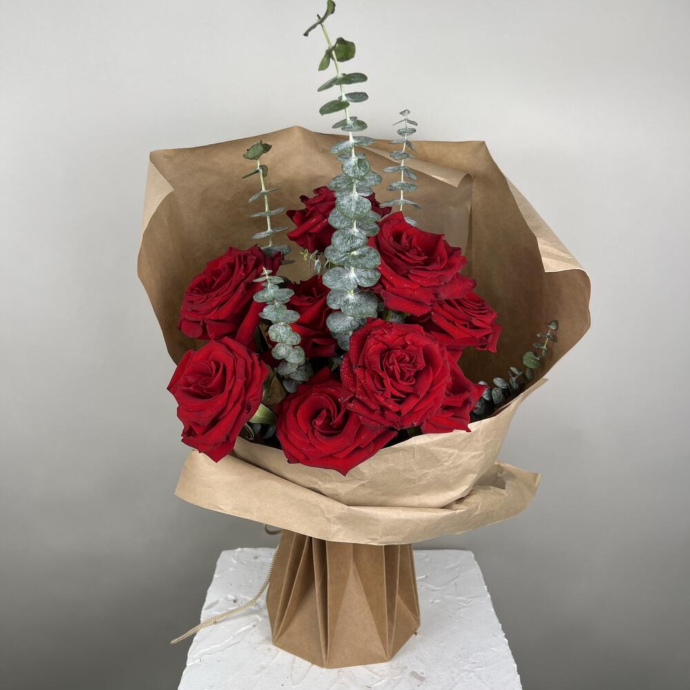Bu Mono Buketin zəngin canlılığından zövq alın — içində 12 ədəd əl ilə seçilmiş qırmızı gül və incə eukaliptus notu birləşir. Bu zərif kompozisiya yalnız görünüşü ilə seçilmir; zövqlü tərtibatı isə hər hansı məkanı lüks bir toxunuşla doldurmağı vəd edir. Bütün fürsətlər üçün möhtəşəm seçim olan bu buket əzəmət və zərifliyin ifadəsidir.