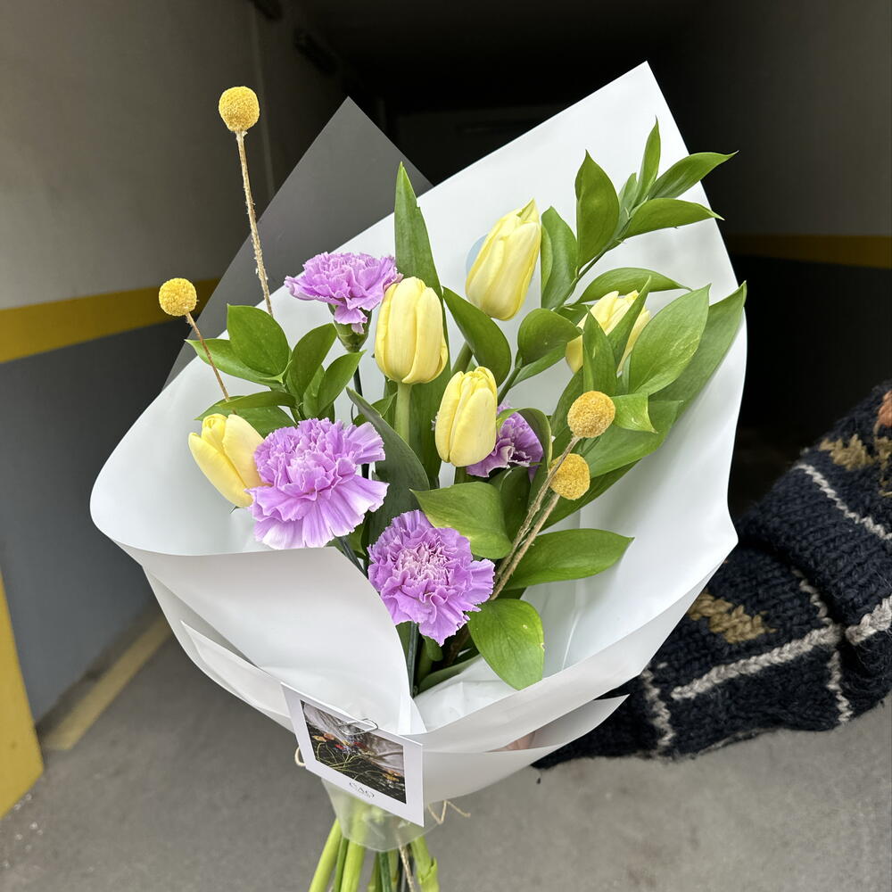 Lalə - 5 ədəd qaranfil - 4 ədəd kraspediya - 4 ədəd