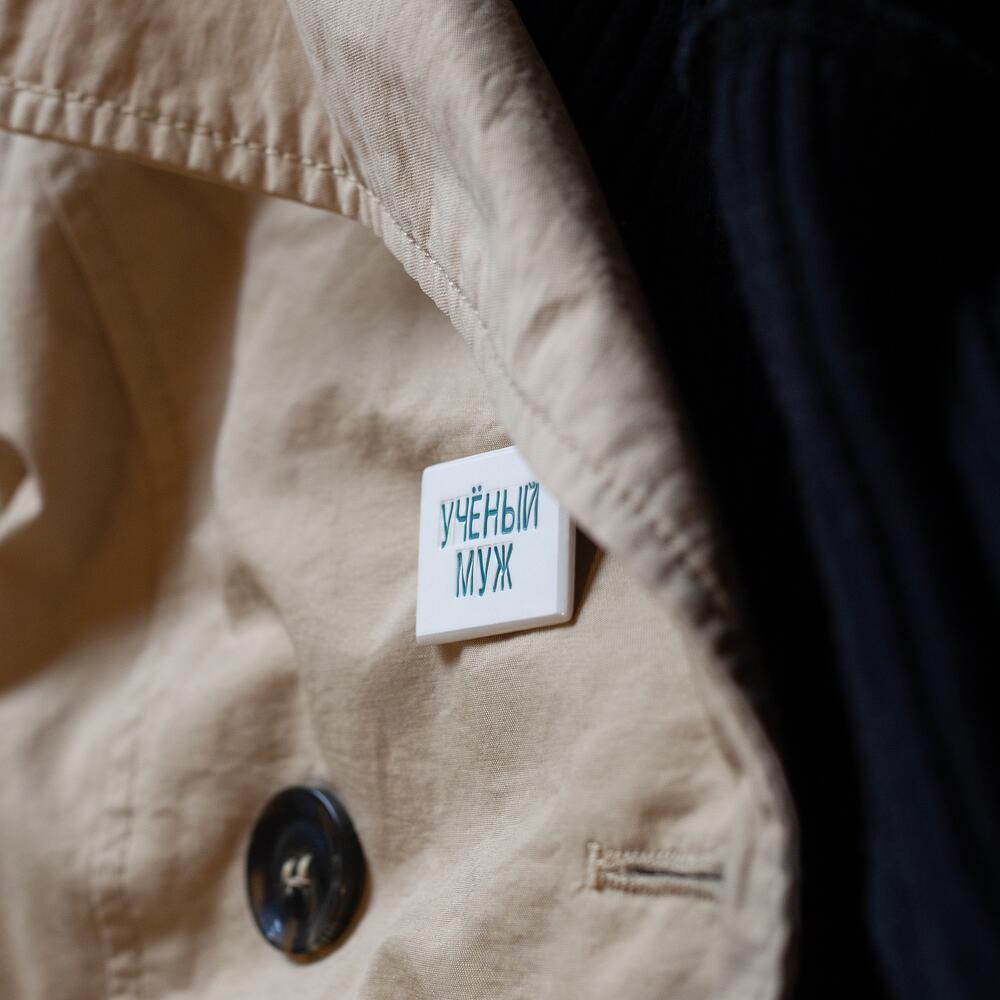 Ceramic brooch Ucheni muz