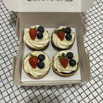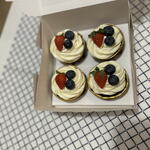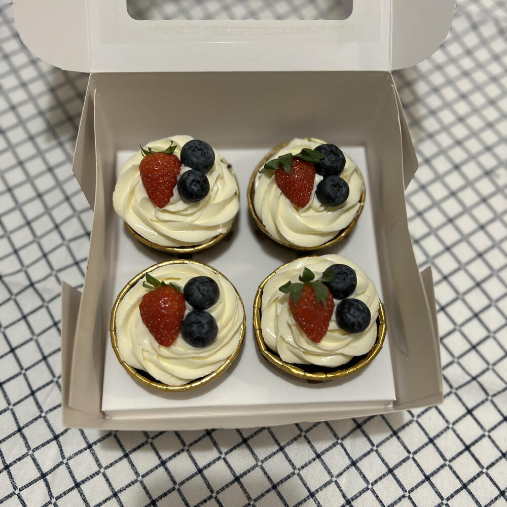 - [ ] Flour, egg, butter, fresh berries, cream cheese, sugar, salt, kefir, cream, baking powder, milk chocolate, blueberry, kumquat, vanilla or chocolate sponge cake.