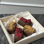 Бананы Шоколад бельгийский (сахар, какао-масло, сухое цельное молоко, соевый лецитин и натуральный ароматизатор ванили) Вафельная крошка Сублимированная малина