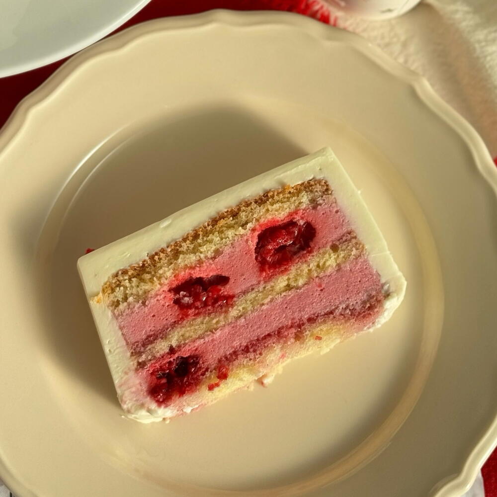 Raspberry cloud: cream cheese, raspberries, cream, sugar, flour, water, butter, milk, powdered sugar, vegetable oil, egg, gelatin, baking powder. Rafaello: flour, sugar, milk, cream cheese, butter 82%, natural cream 33%, sunflower oil, white chocolate, almonds, coconut flakes, coconut puree, homemade waffle, chicken egg, glucose syrup, baking powder, gelatin, water. Mousse Snickers: sugar, flour, milk, natural cream 33%, butter 82%, cream cheese, sunflower oil, peanuts, natural peanut butter, cocoa, white chocolate, chicken egg, glucose syrup, baking powder, gelatin, water, salt.
