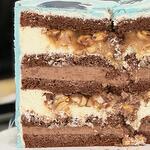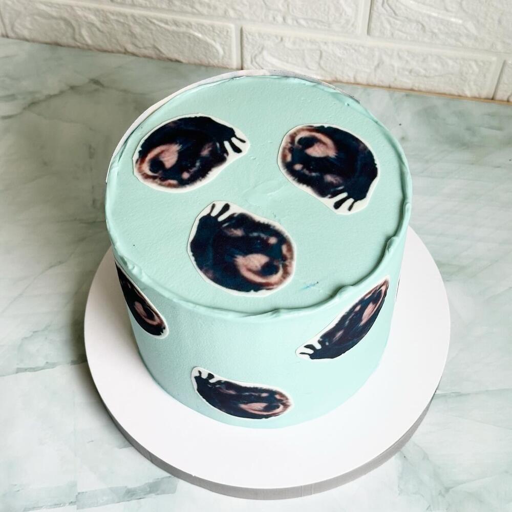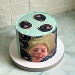 The coating is made of Belgian white chocolate. The color of the cake can be changed to another one. You can also change the print and add another decor, topper, sequins, beads).