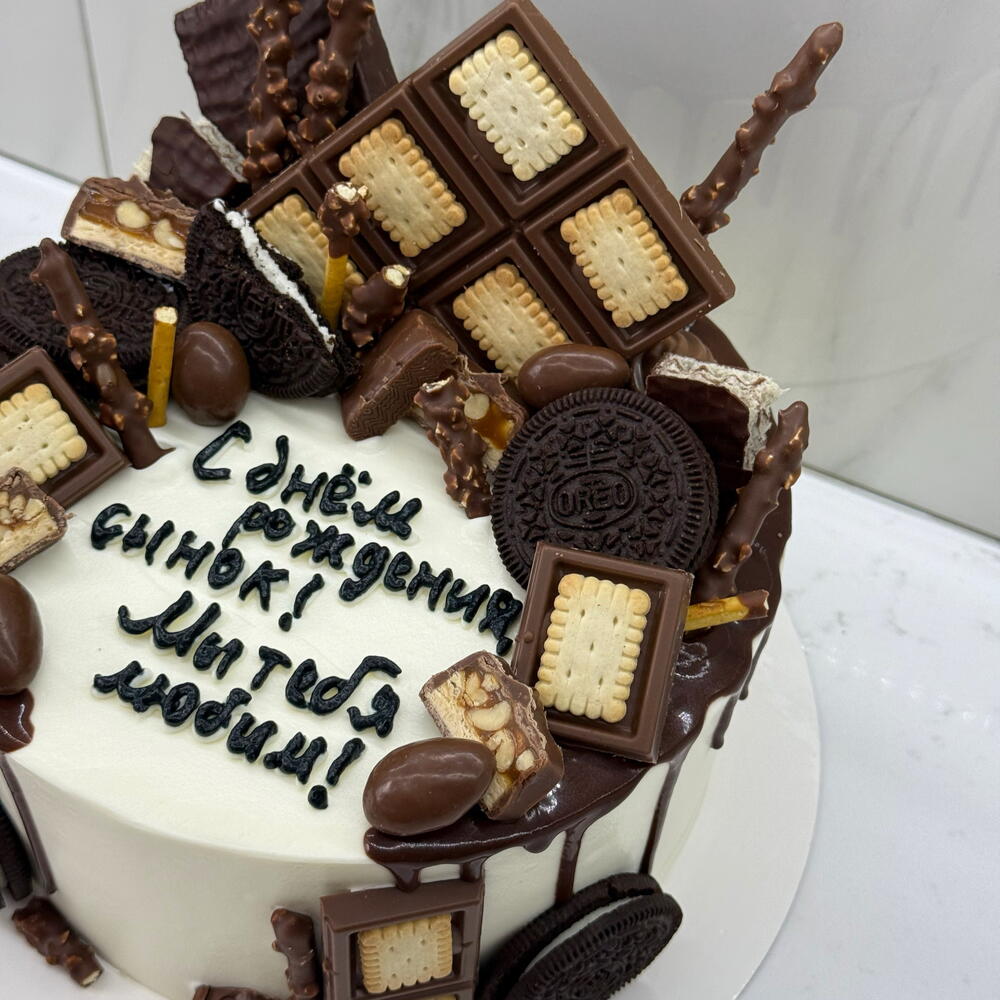 Cake with chocolate bars decor