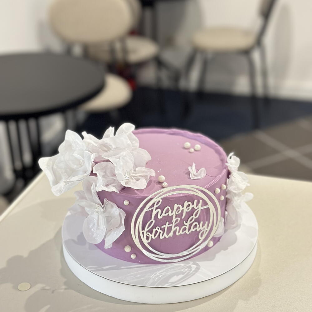 A cake with filling of your choice. Comes in variety of colors. Flowers can be painted pastel colors too. Topper may be different