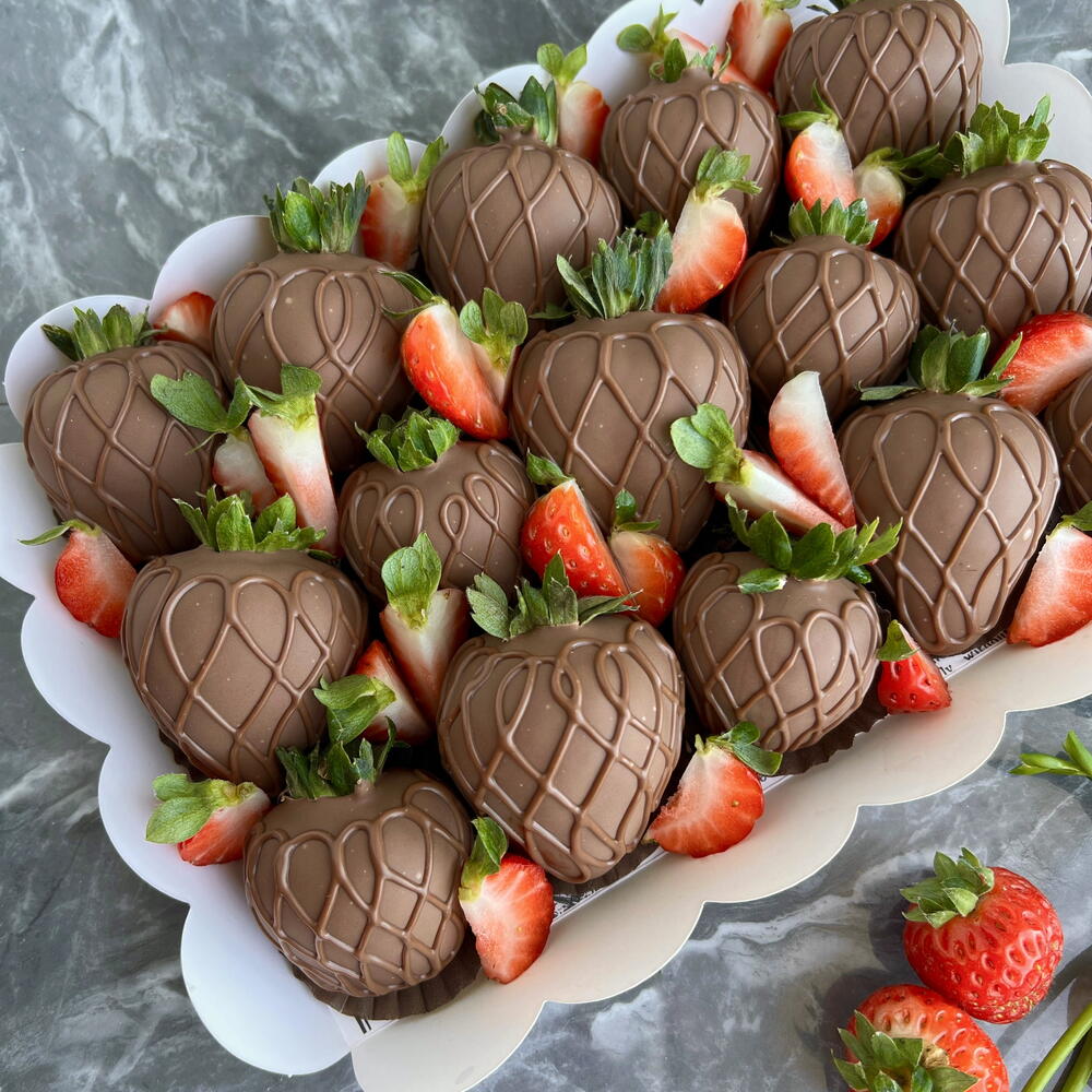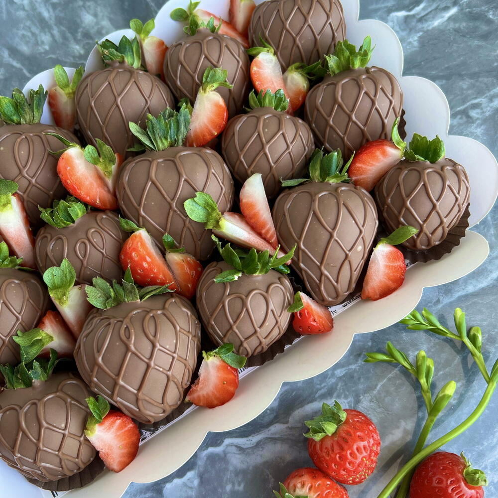 Strawberries - 15 or 18 berries depending on size. Belgian chocolate, Callebaut