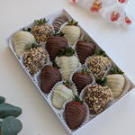 Morangos cobertos com chocolate são o presente perfeito para os amantes de doces! O conjunto inclui 15 morangos cobertos com delicado chocolate belga. Este chocolate tem uma composição natural e oferece um sabor rico e equilibrado. O sabor deste chocolate não deixará ninguém indiferente!