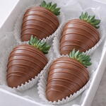 Handmade chocolate-covered strawberries made from fresh strawberries and premium chocolate. • 4 pieces • Each strawberry may vary in size and shape • Presented in a white gift box