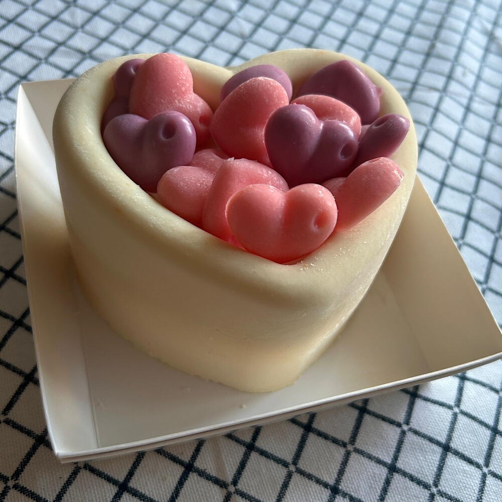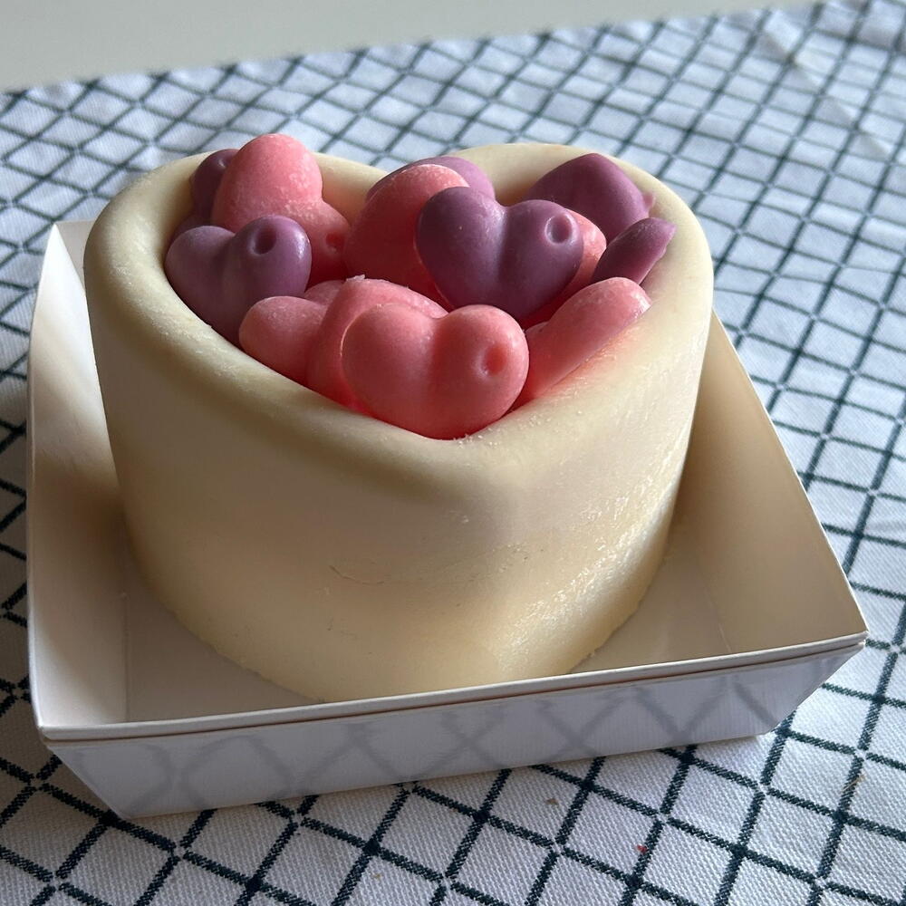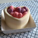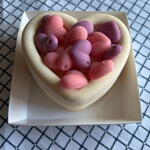 Milk chocolate mousse with sponge cake and strawberry filling. Packaged in a box with a ribbon closure. Store in the refrigerator for 48 hours.