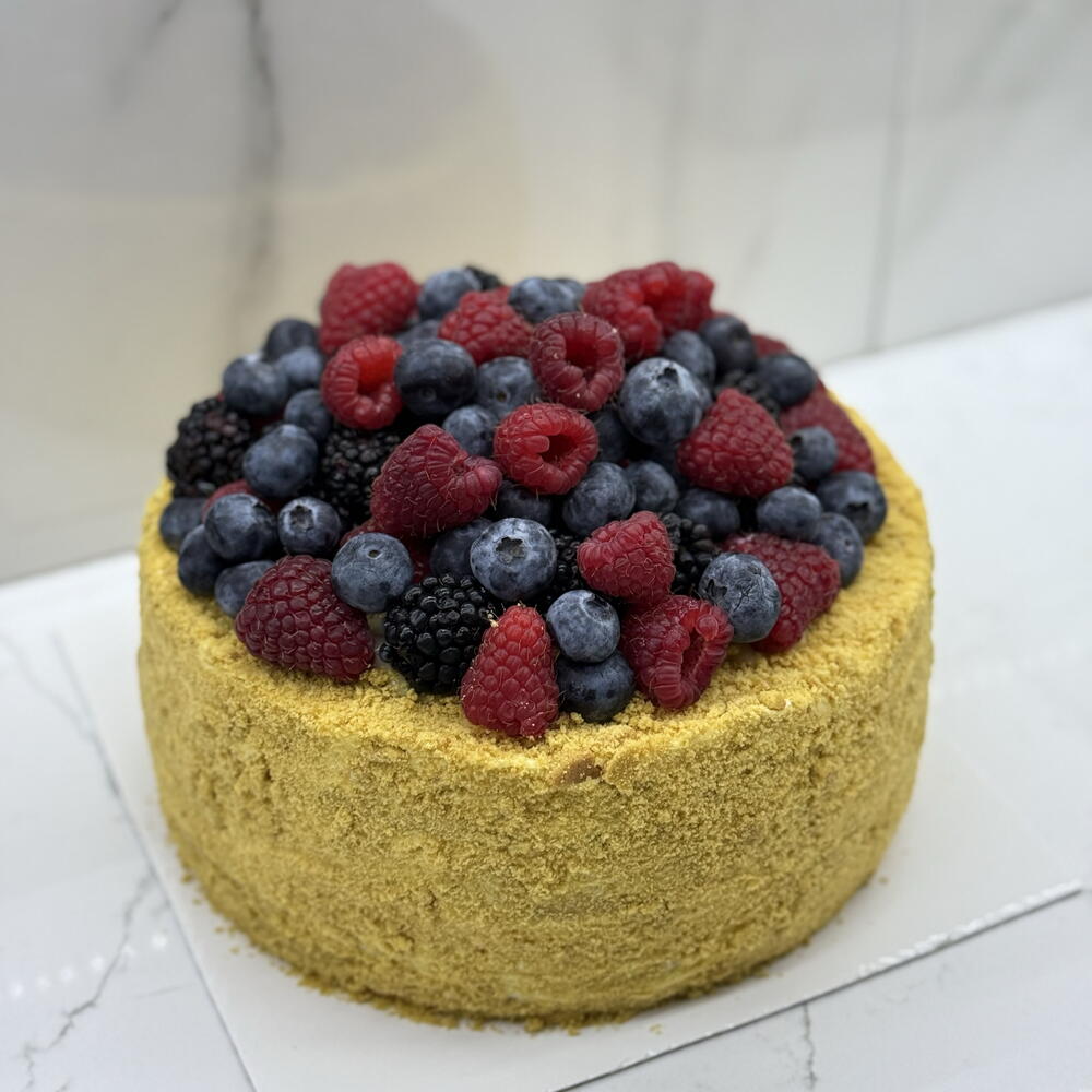 A classic cake available with a choice of fillings: Vanilla, Chocolate, "Milk Girl," or Honey Cake. Weight: 1.5-2.5 kg (calculated for 6-10servings).