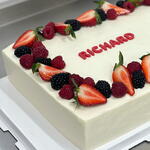 You can choose the shape of a cake - round or rectangular. Comes with filling of your choice. Decorated with fresh berries (may vary depending on the season). If you order an edible stamp with your photo - please send it in chat.