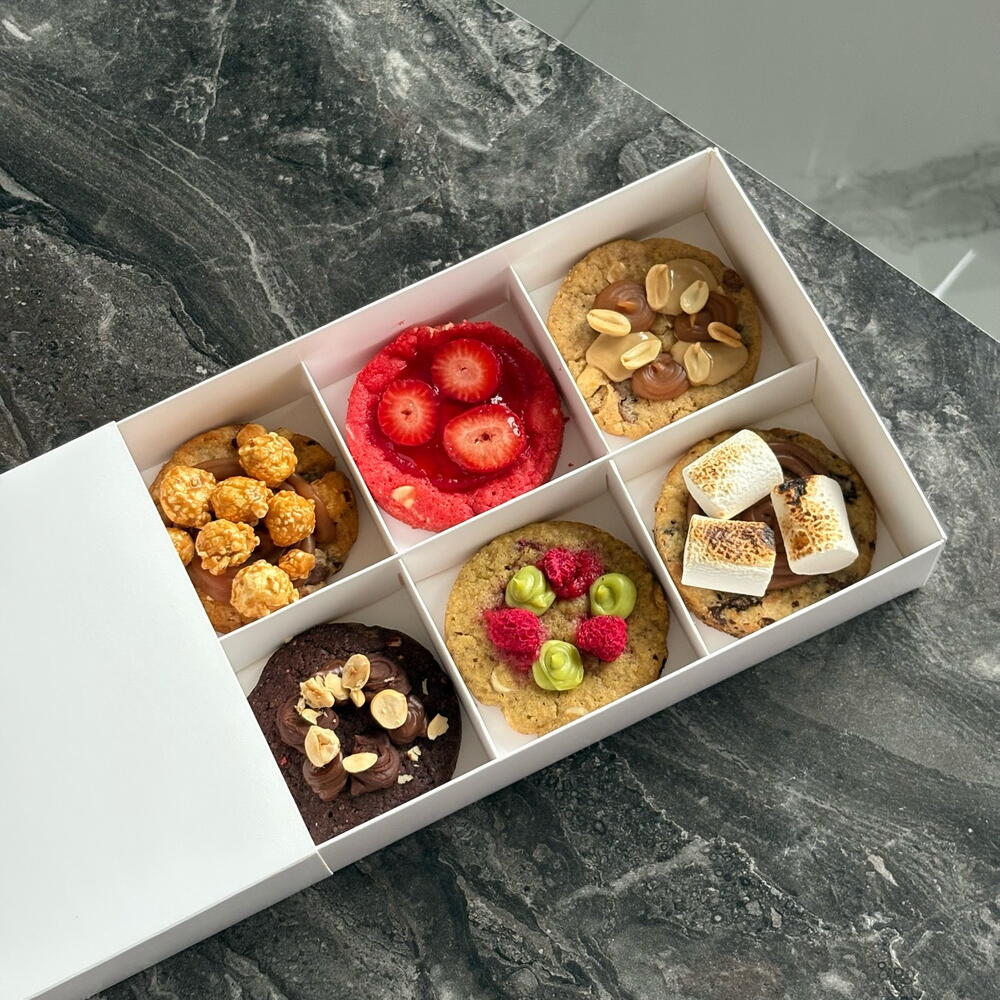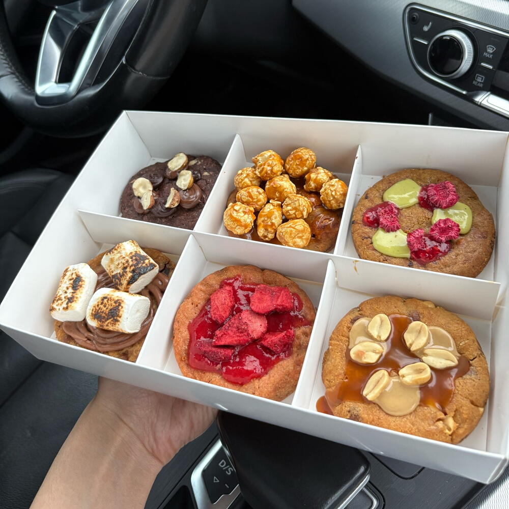 🍪 Crumbl Cookies — печенье, которое стало десертом Набор из 6 видов фирменного печенья, где каждая штука — как маленький торт. Их особенность в том, что начинка находится сверху, а не внутри, благодаря чему вкус раскрывается с первого укуса. Тёплое, мягкое тесто и кремовая начинка создают идеальный баланс сладости и текстуры. В наборе: 🌰 Фундук с шоколадом — насыщенный ореховый вкус и шоколад. 🍪 Американский с маршмеллоу — тянущийся зефир и карамельное печенье. 💗 Фисташка-малина — ореховая база, ягодная свежесть и нежный крем. 🍿 Карамельный попкорн с кофе — нежная сливочная карамель и лёгкий кофейный аромат. 🥜 Арахис-карамель — плотный, сытный и невероятно ароматный. 🍓 Клубника с ягодной прослойкой — свежая, сочная и летняя классика. Такой набор подойдёт для любого повода — дня рождения, вечеринки, подарка или просто уютного чаепития. Каждое печенье — маленькая порция удовольствия, созданная, чтобы делиться. Срок годности: 72 часа при хранении в холодильнике. За 15–20 минут до подачи рекомендуется достать из холодильника — чтобы тесто стало мягким, а крем нежным. Если хотите заказать на конкретную дату или время, которых нет в приложении — напишите нам, и мы обязательно постараемся исполнить ваш запрос 💕