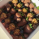 Strawberry Milk chocolate Nuts almond Blueberry (some covered in chocolate)