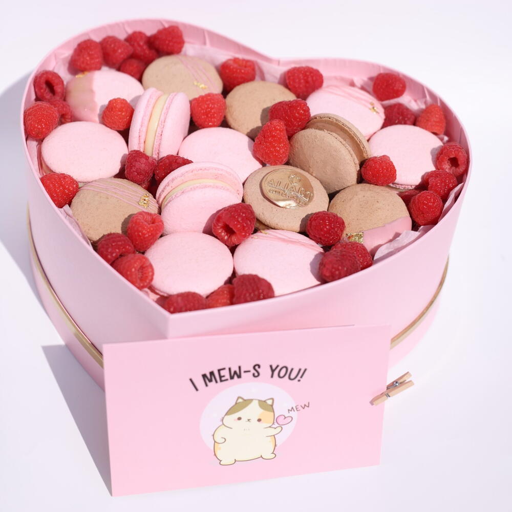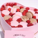 Ingredients: Macaron Shells: Almond Flour Confectioners Sugar Egg Whites Granulated Sugar Cocoa Powder Chocolate-Passion Fruit Filling: Milk Chocolate Passion Fruit Puree Heavy Cream Cream Cheese Decorating: fresh raspberries