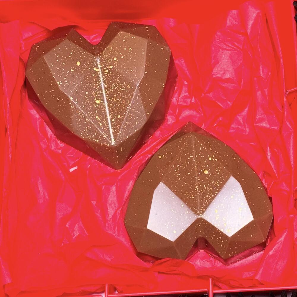 A luxurious chocolate gift set featuring two Dubai-style chocolate hearts and seven handcrafted pralines. Each piece is made from high-quality chocolate with a rich filling and elegant design. A perfect sweet gift for special occasions or to surprise someone you love.