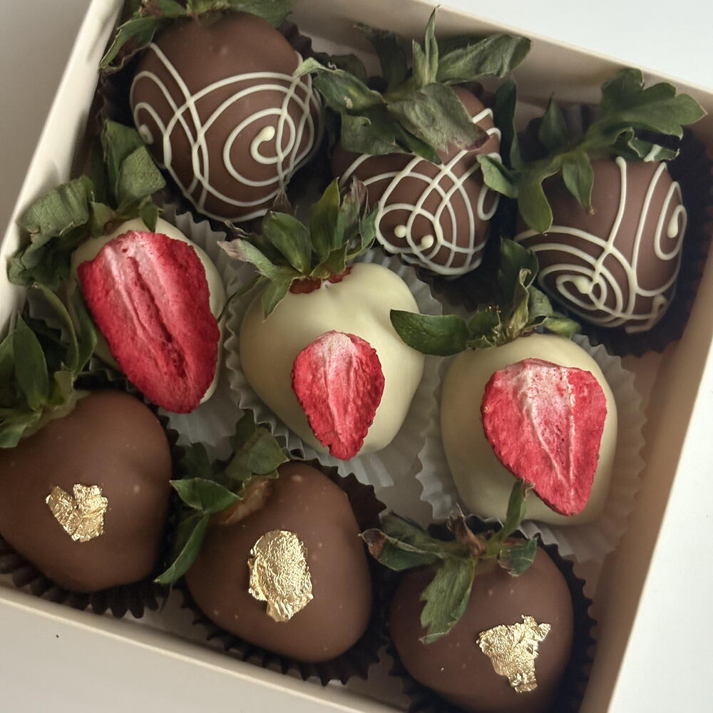 Малина Клубника Шоколад молочный (сахар, какао-масло, сухое цельное молоко, соевый лецитин и натуральный ароматизатор ванили) Шоколад белый (сахар, какао-масло, сухое цельное молоко, соевый лецитин и натуральный ароматизатор ванили) Пищевое золото