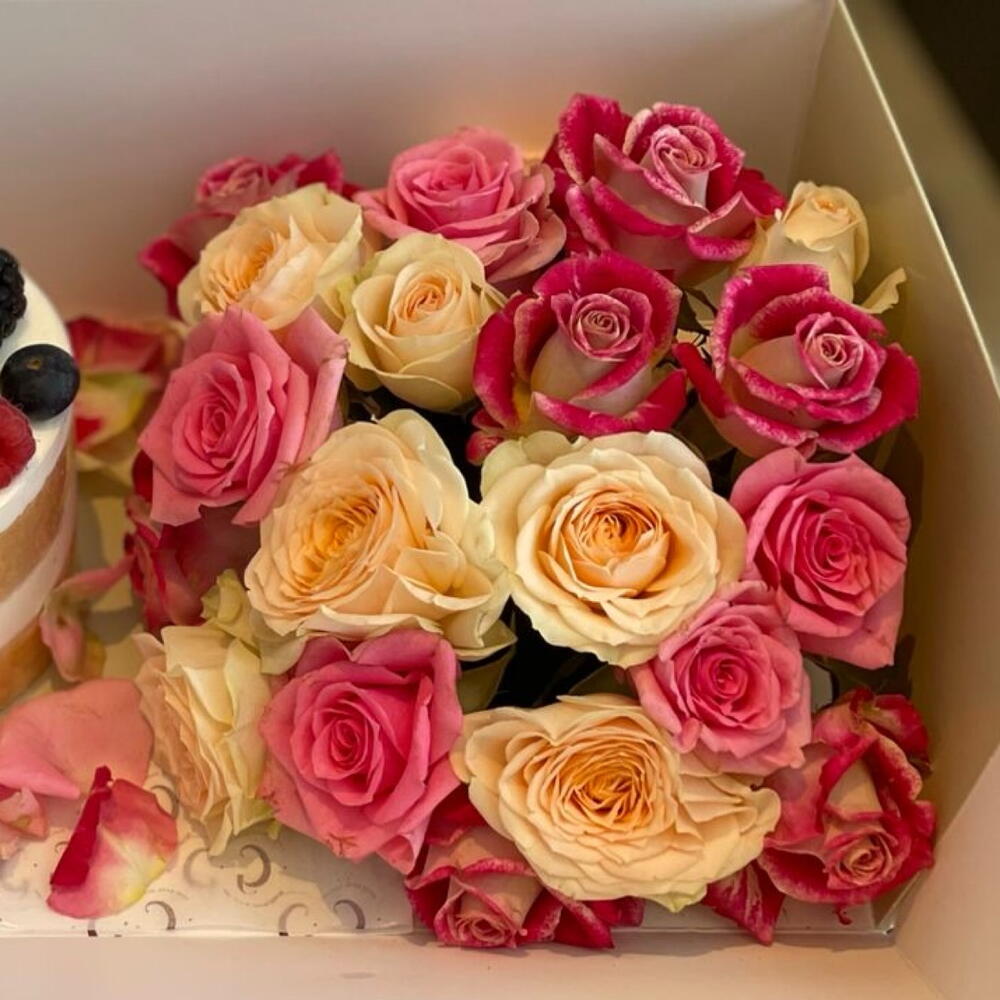 كيك فاخر من شركة دانش للكيك مع ورد فاخر هولندي