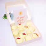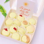 Lime Passion Fruit Macarons Gift Box — 12 pcs • Gift box of 12 French macarons. • Flavor: passion fruit and fresh lime. • Delicate texture with a perfect balance of sweetness and citrus freshness. • Made with premium almond flour, fresh cream, and quality chocolate. • Elegant gift-ready packaging. • Perfect for birthdays, romantic gifts, anniversaries, and corporate presents. • Custom greeting card available. • Same-day delivery in New York.