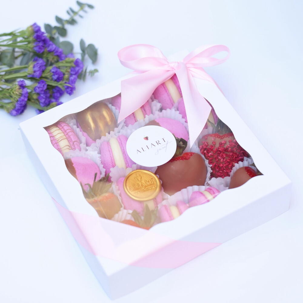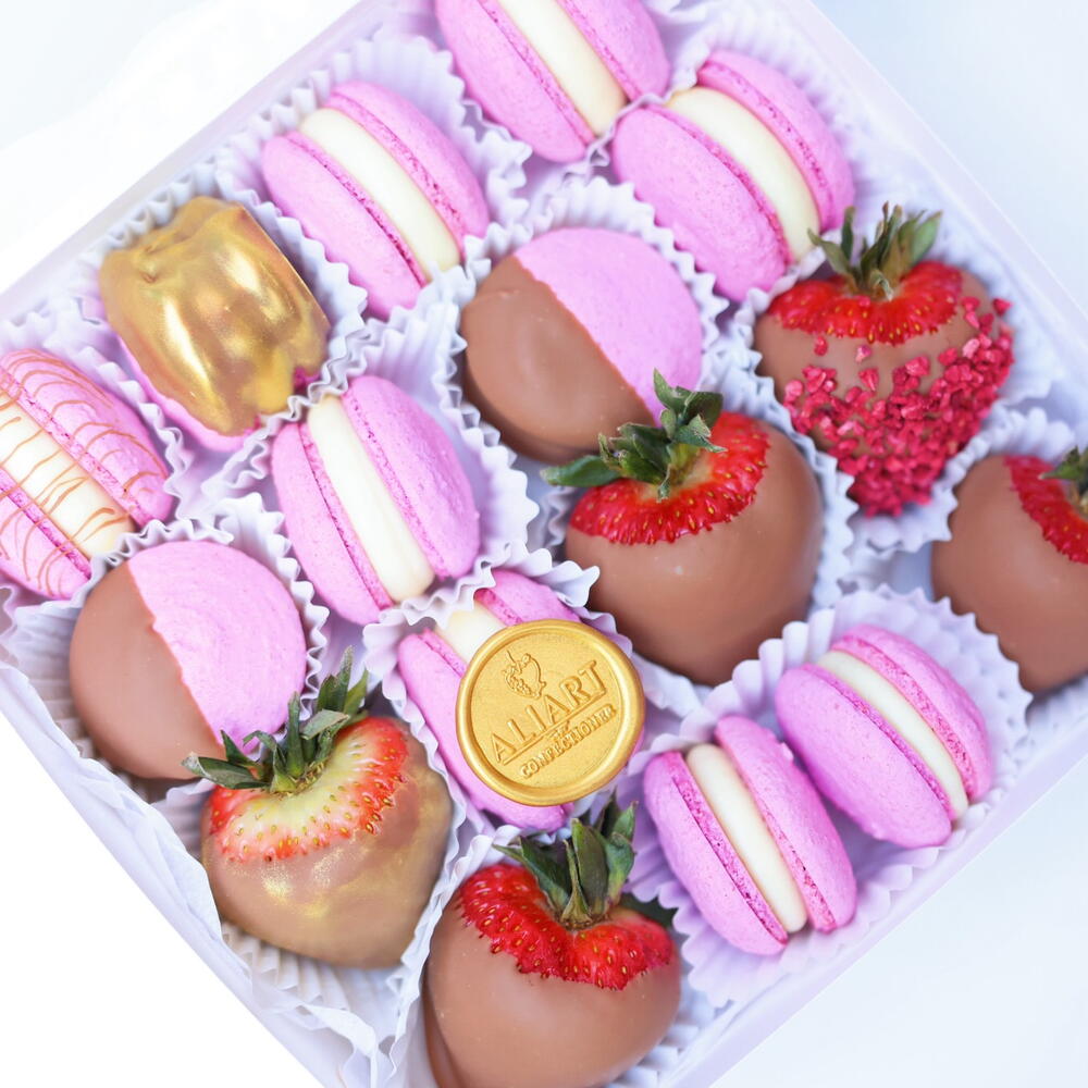CHOCOLATE-COVERED STRAWBERRIES MACARONS GIFT BOX