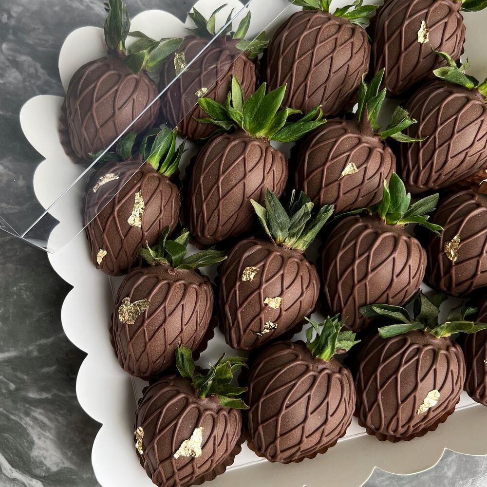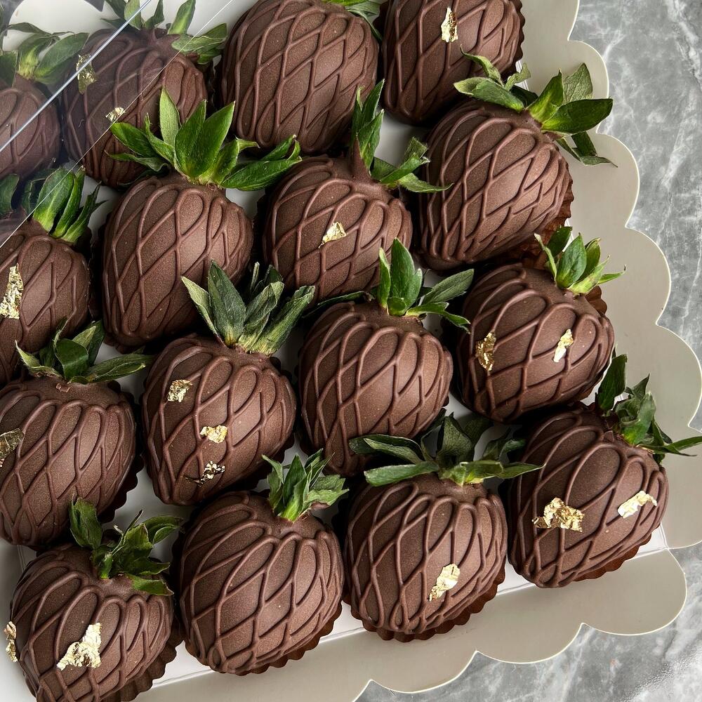Delicious dessert: strawberries in dark chocolate - the perfect gift for any occasion! Box of 16 pieces