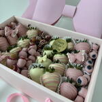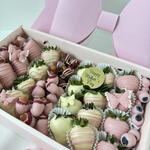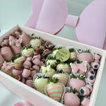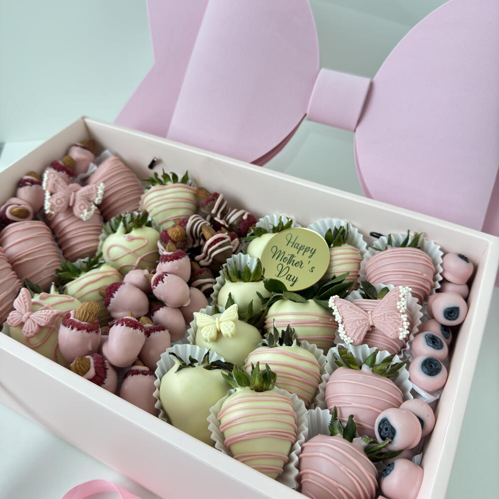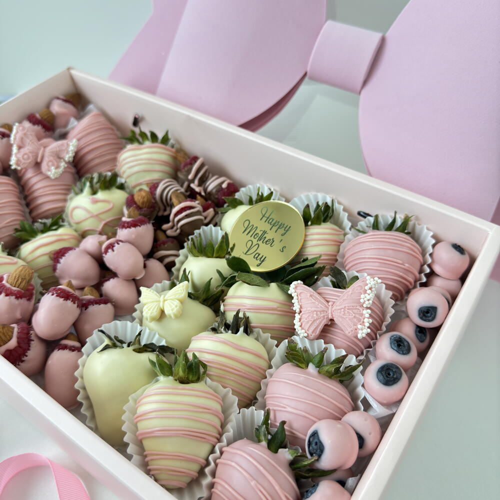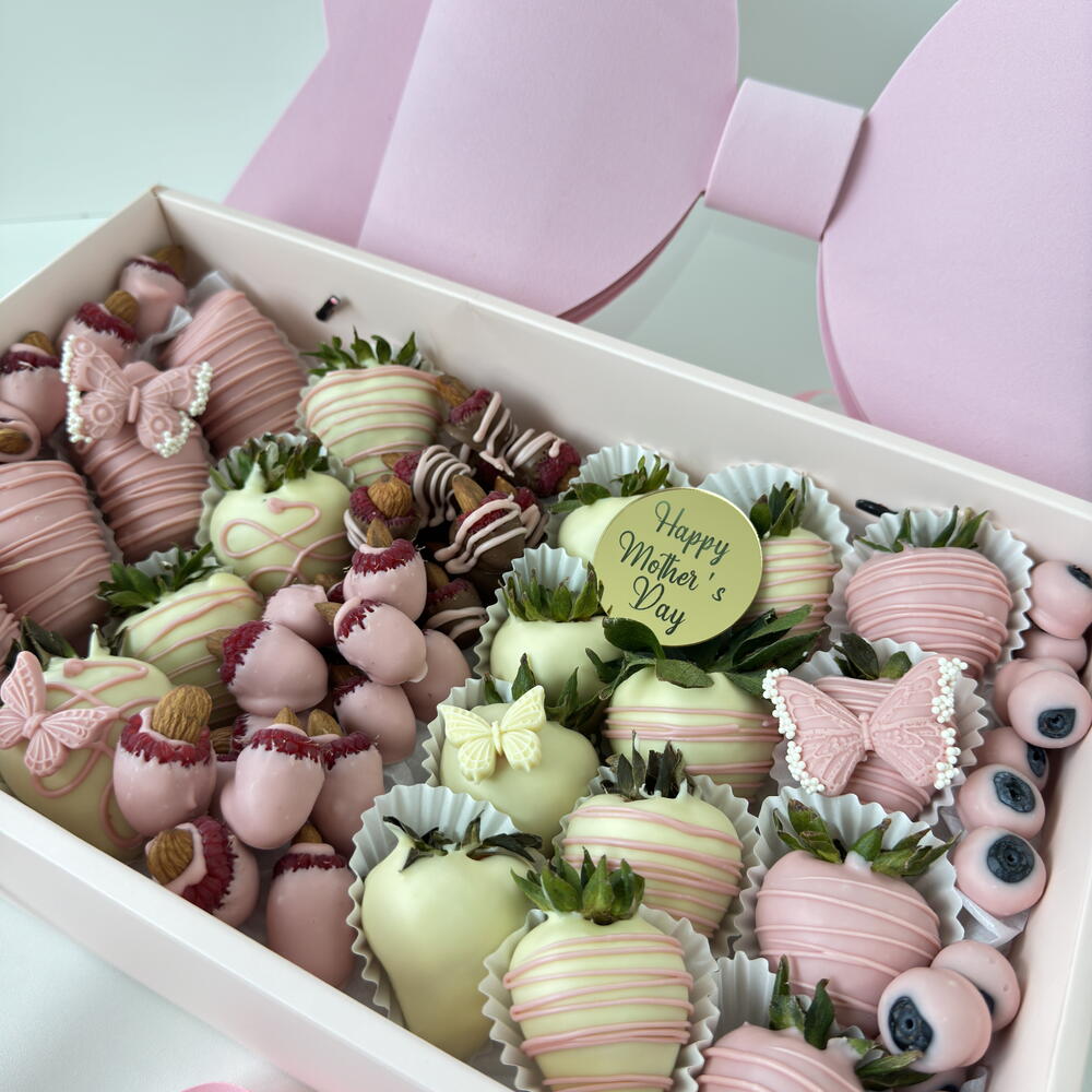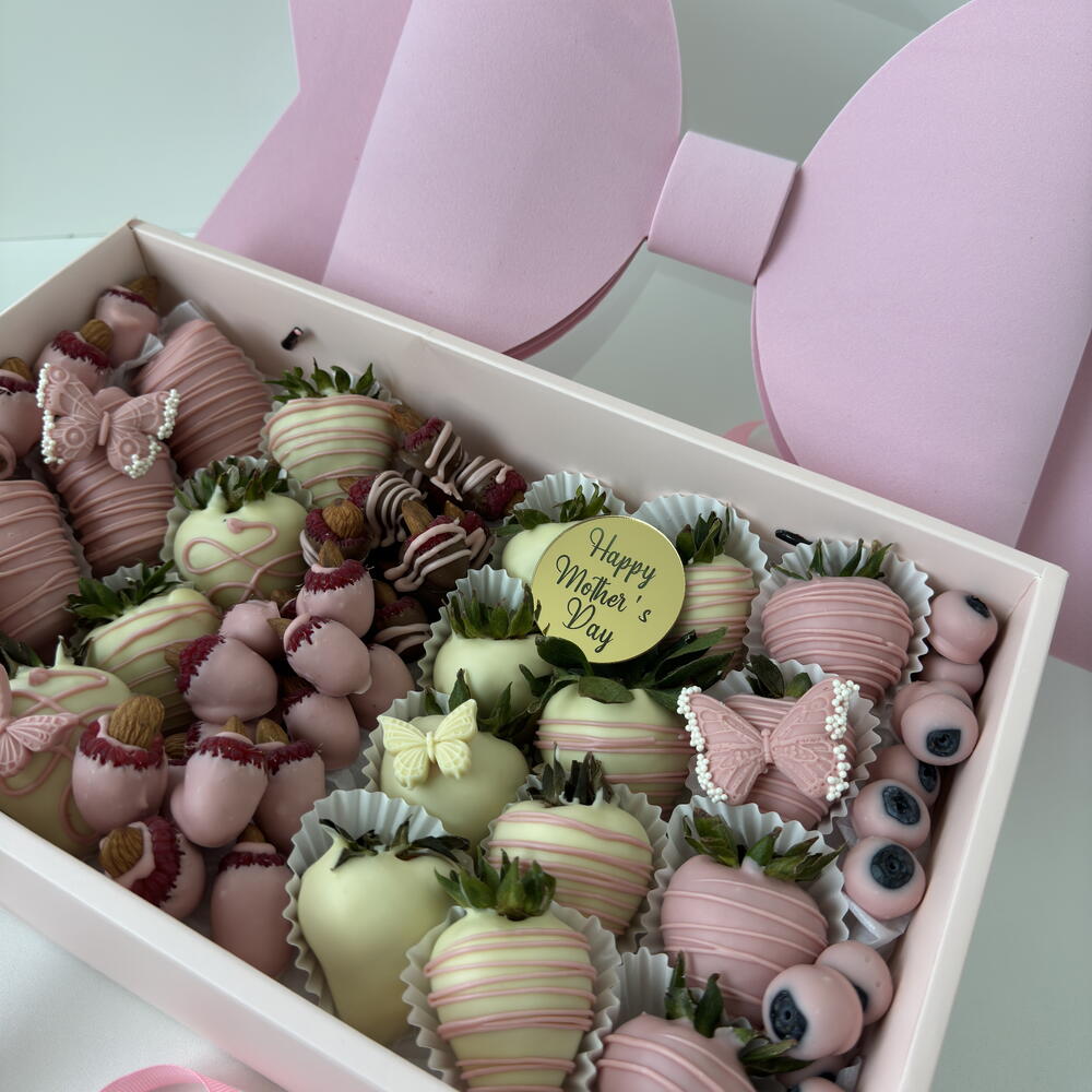 Experience the perfect blend of elegance and indulgence with this beautiful pink gift box tied with a ribbon. Inside, you’ll find a delicious assortment of premium chocolate-covered fruits. This exquisite gift is perfect for birthdays, anniversaries, romantic surprises, or any special occasion. A luxurious treat for those who appreciate fine chocolate and fresh fruits!