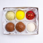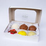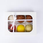 Mochi set Premium of 6 pieces consists of: - STRAWBERRY CHOCOLATE MOCHI - 1 PC - MOCHI PISTACHIO - 1 PC - MOCHI SNICKERS - 1 PC - MOCHI RAFAELLO - 1 PC - MOCHI MANGO PASSIONATE - 1 PC - MOCHI HAZELNUT - 1 PC - GIFT BOX AND DECORATIONS * In this set, mochi can be replaced if one of the flavors is missing All mochi are gluten, egg and gelatin free.