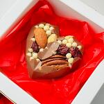 Chocolate (ground cocoa (Santo Domingo); sugar; cocoa butter; emulsifier: soy lecithin; natural flavor: vanilla), hazelnuts, pecans, almonds, freeze-dried strawberries, freeze-dried raspberries, cranberries