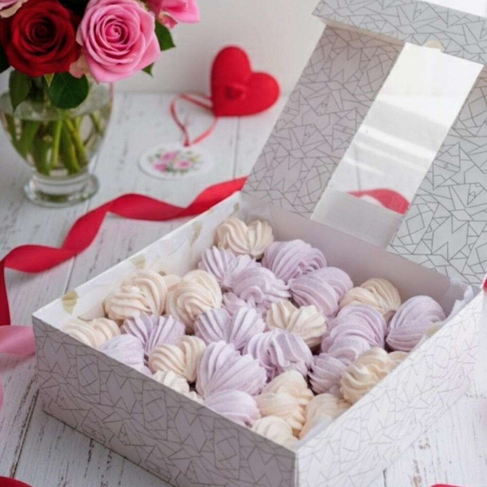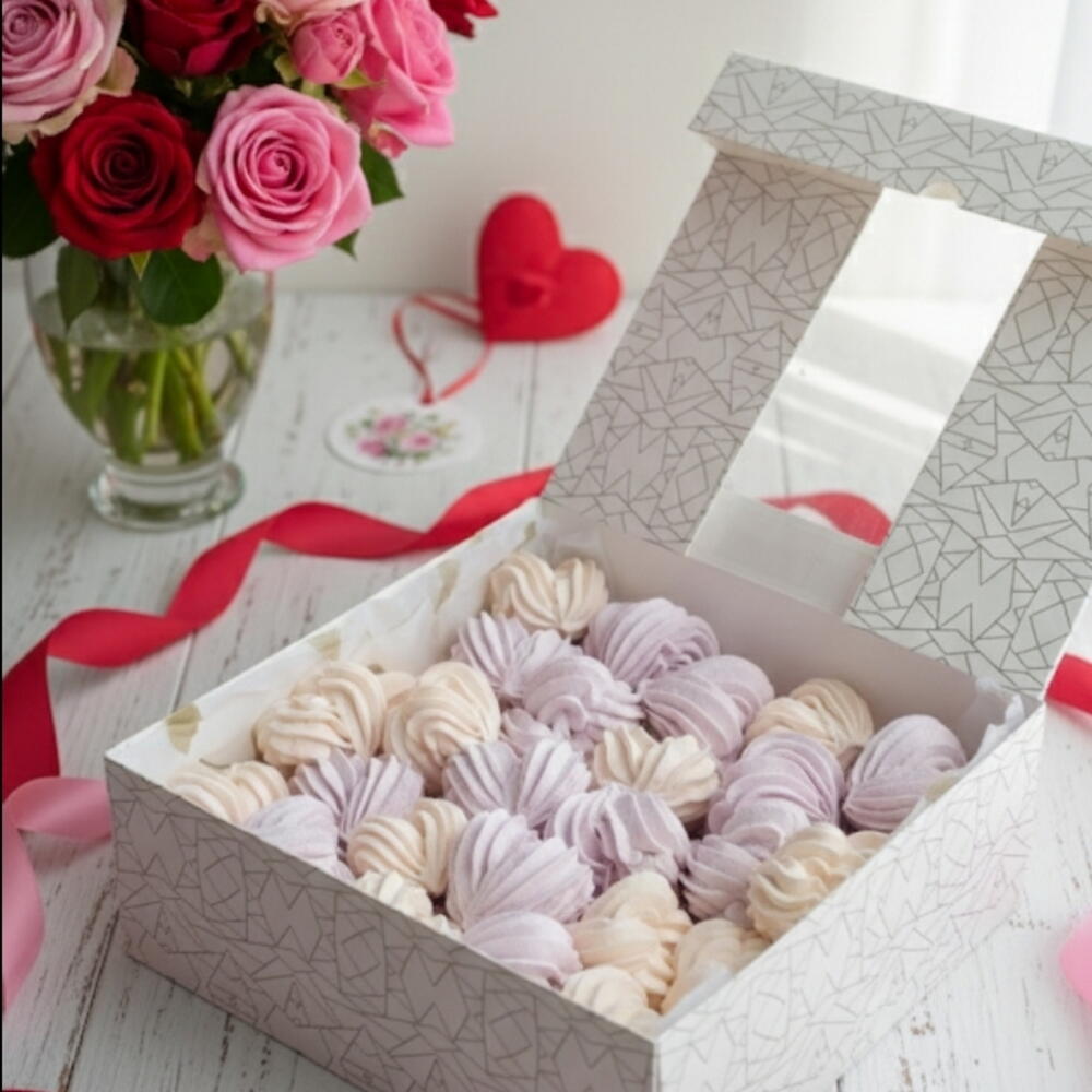 Divu garšu zefīra sirsniņu assorti skaistā dāvanu kastē. Maigs, viegls un gatavots no ogām un augļiem. Ideāla dāvana svētkos, dzimšanas dienā vai romantiskam pārsteigumam. Идеальный зефирный нескольких вкусов подарок на любой повод. Оформление подарка атлас лента + Открытка (по желанию) Приготовим, Упакуем и Доставим лично.