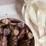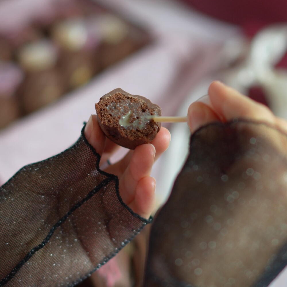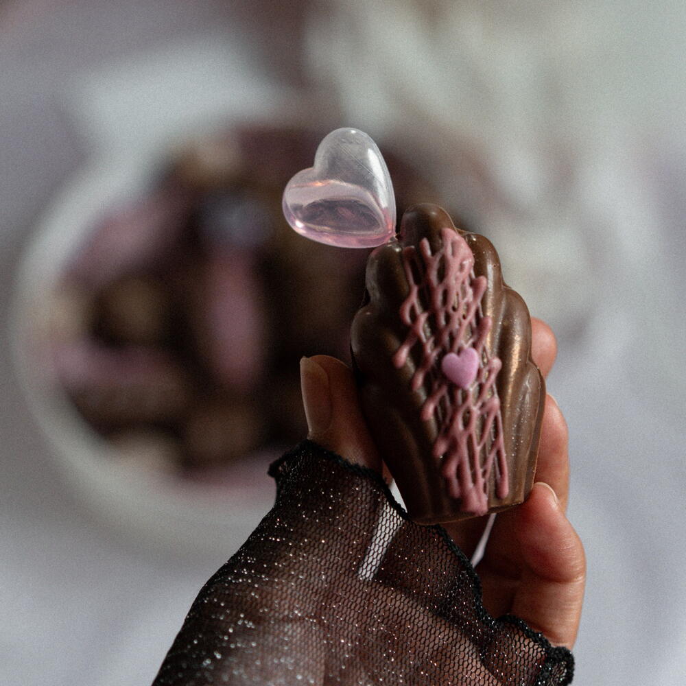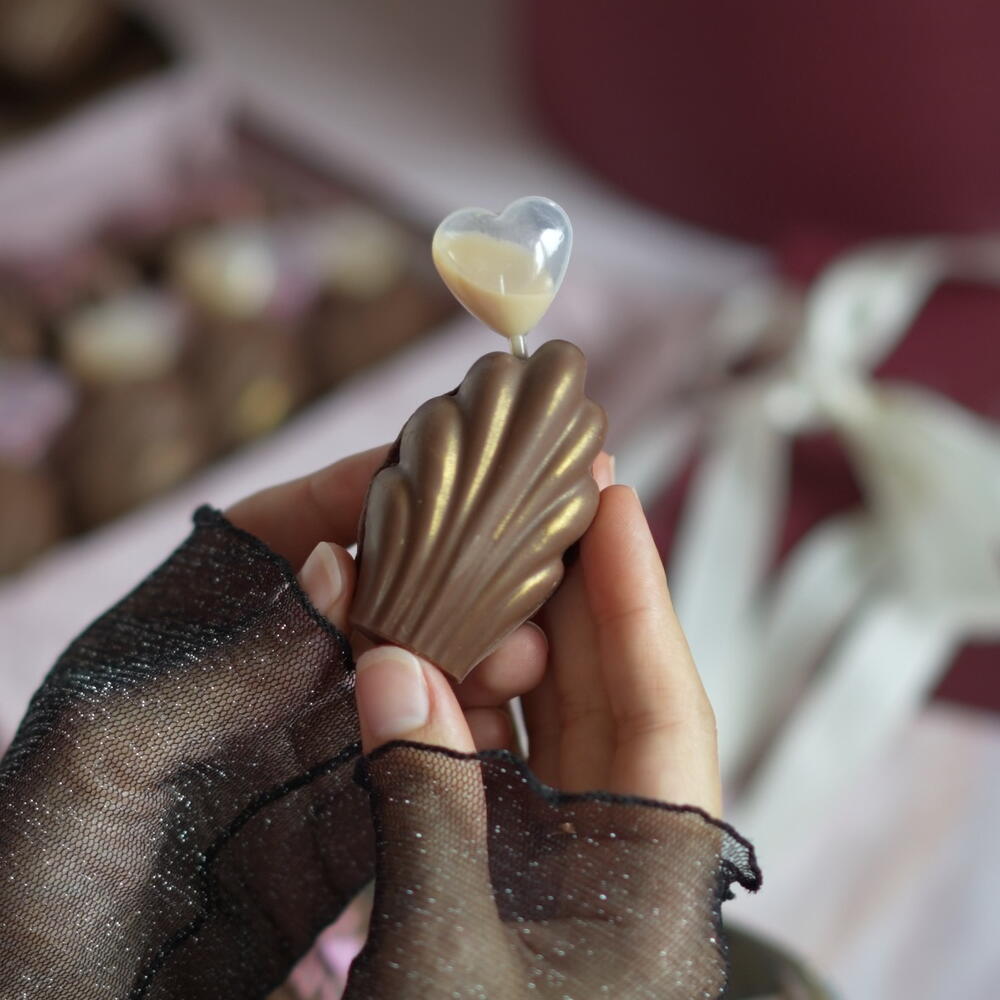 Chocolate madeleines with coffee and Baileys / Rose syrup infusion, assorted fillings, and chocolate coating