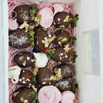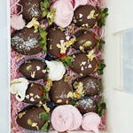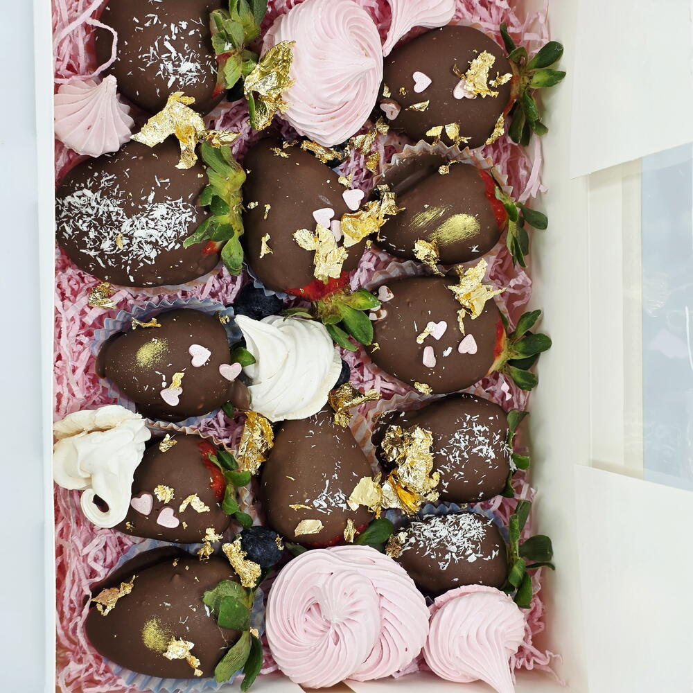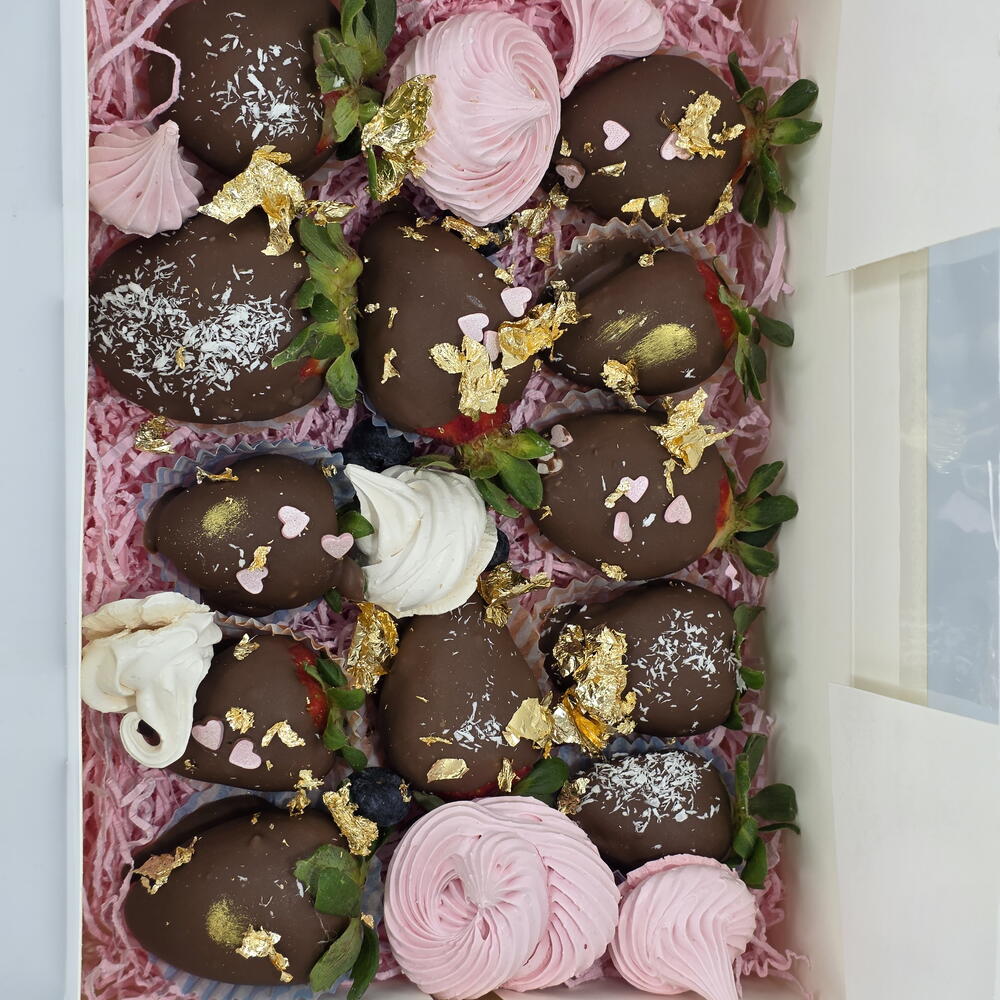 12 pieses fresh strawberry dipped in dark chocolate decorated vs meringue