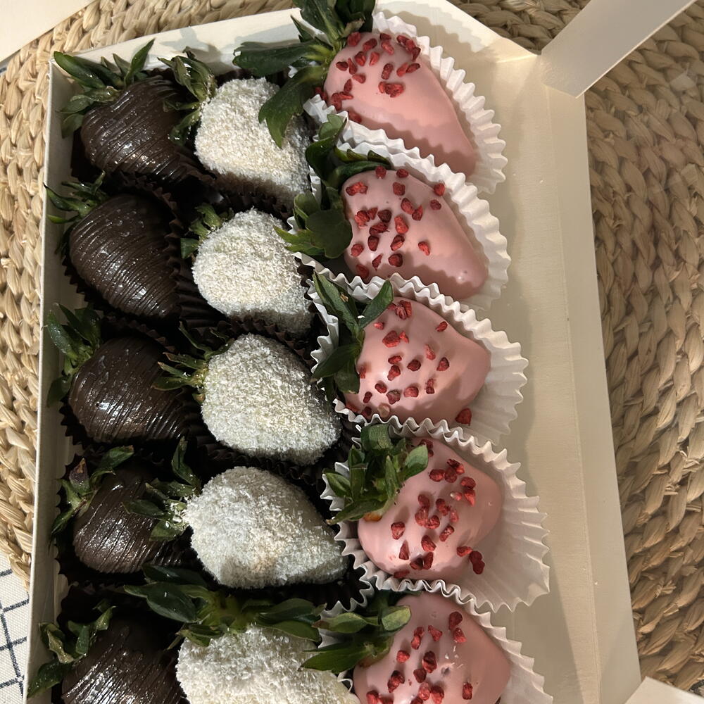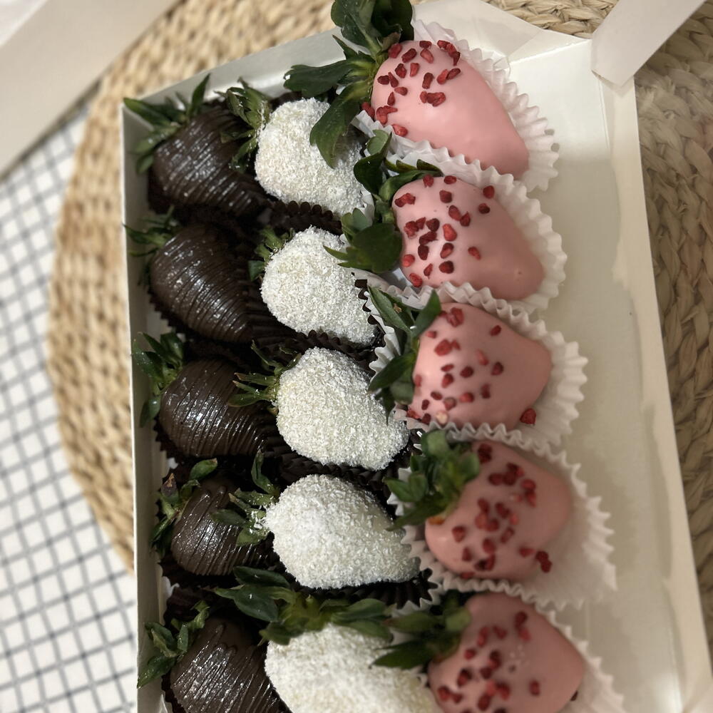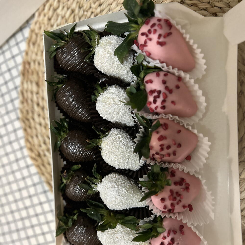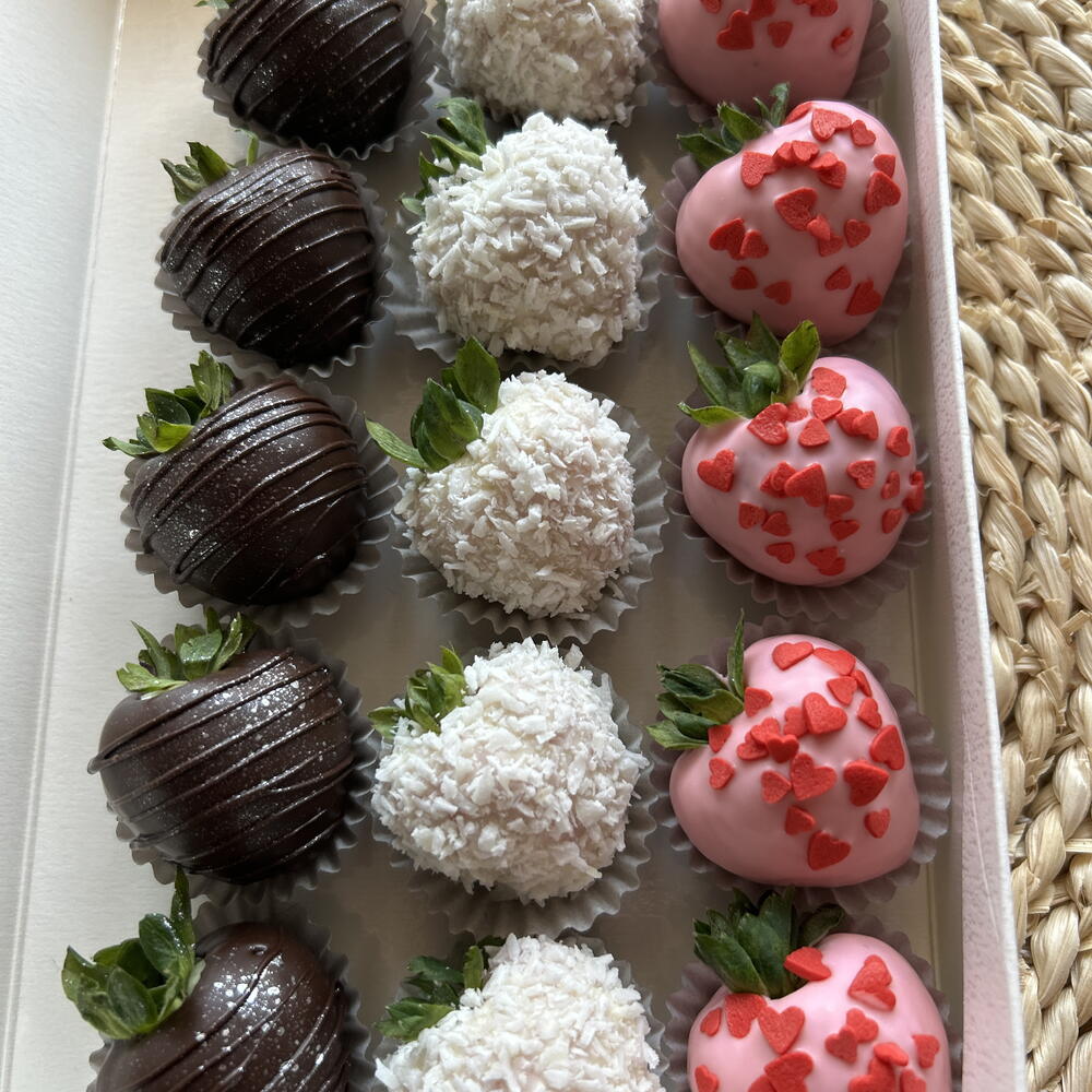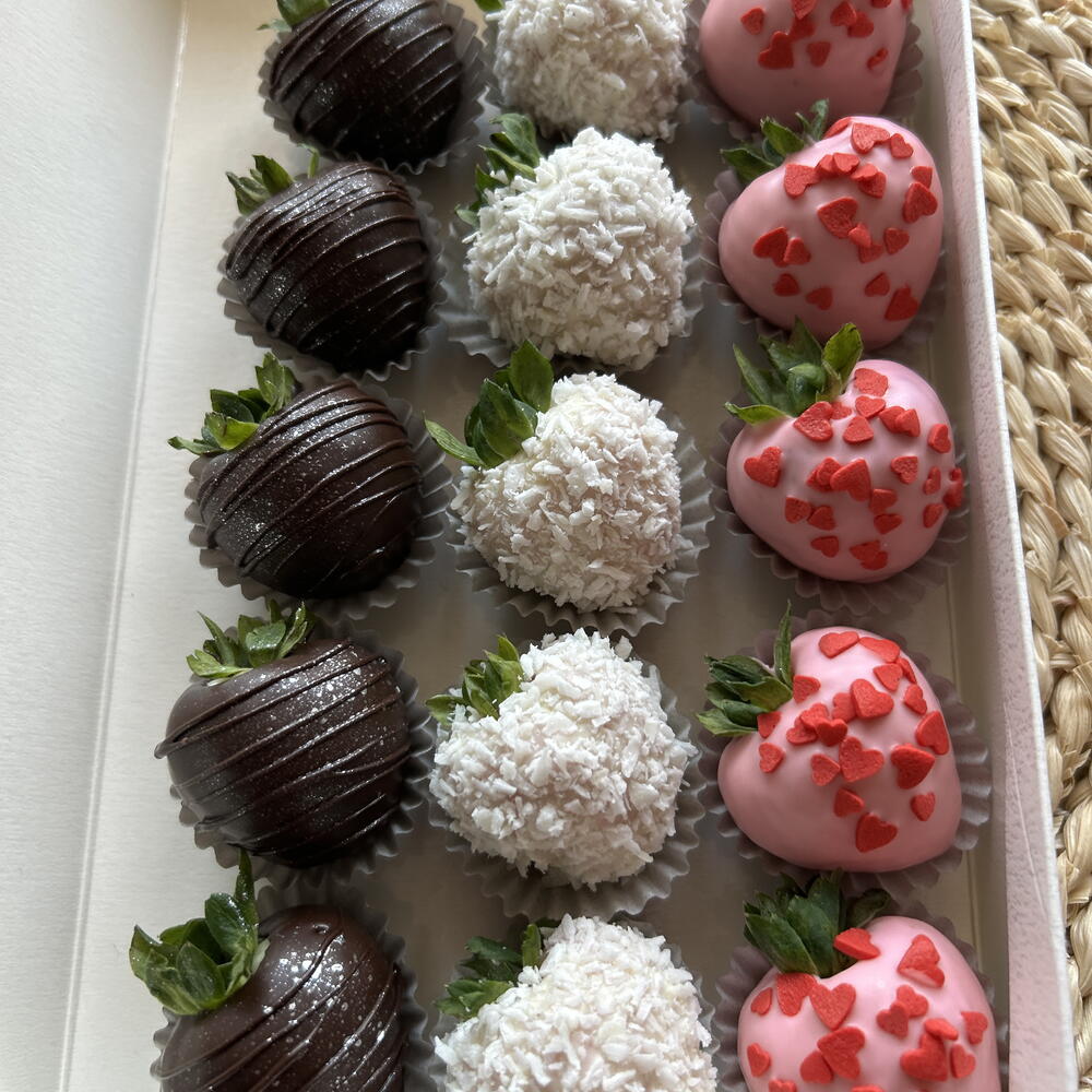 Strawberries,white chocolate,milk chocolate,coconut flakes