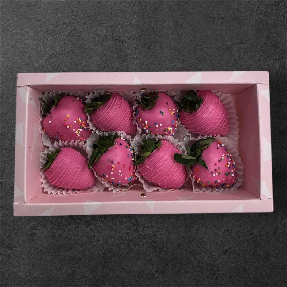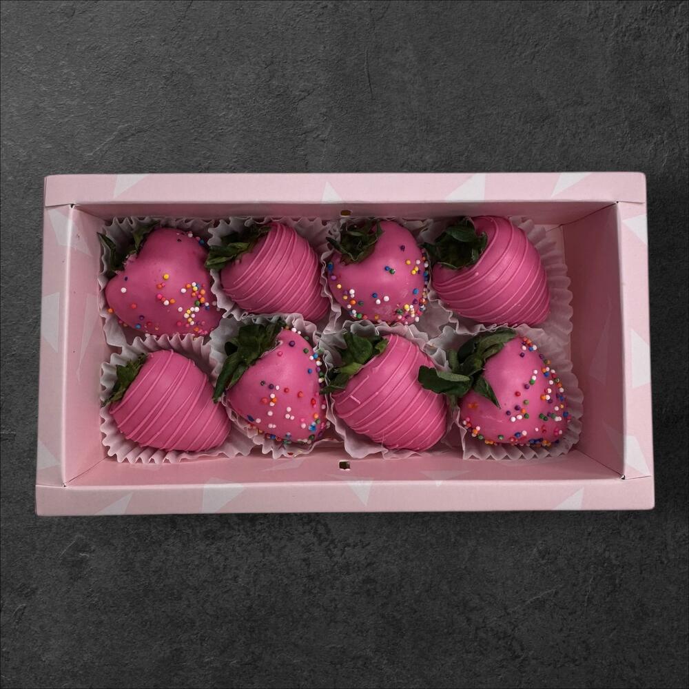 White Chocolate Covered Strawberries (Pink Color) - 8 Pieces