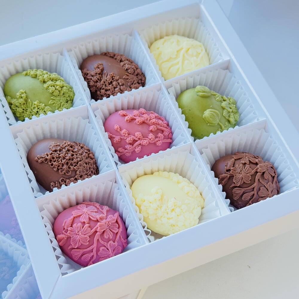 A luxury box of handcrafted chocolate sweets made with premium chocolate. Beautifully decorated and carefully arranged. A perfect gift for any celebration.