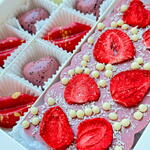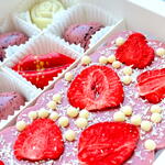 Ruby chocolate 180 g Freeze-dried strawberries 10 g Rice balls 5 g Coconut flakes 5 g
