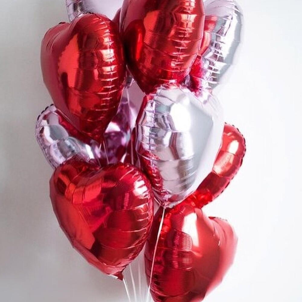 9 красных и серебряных воздушных шаров-сердечек Период плавания латексных шаров составляет 6-8 часов, фольгированных 12-24 часа.
